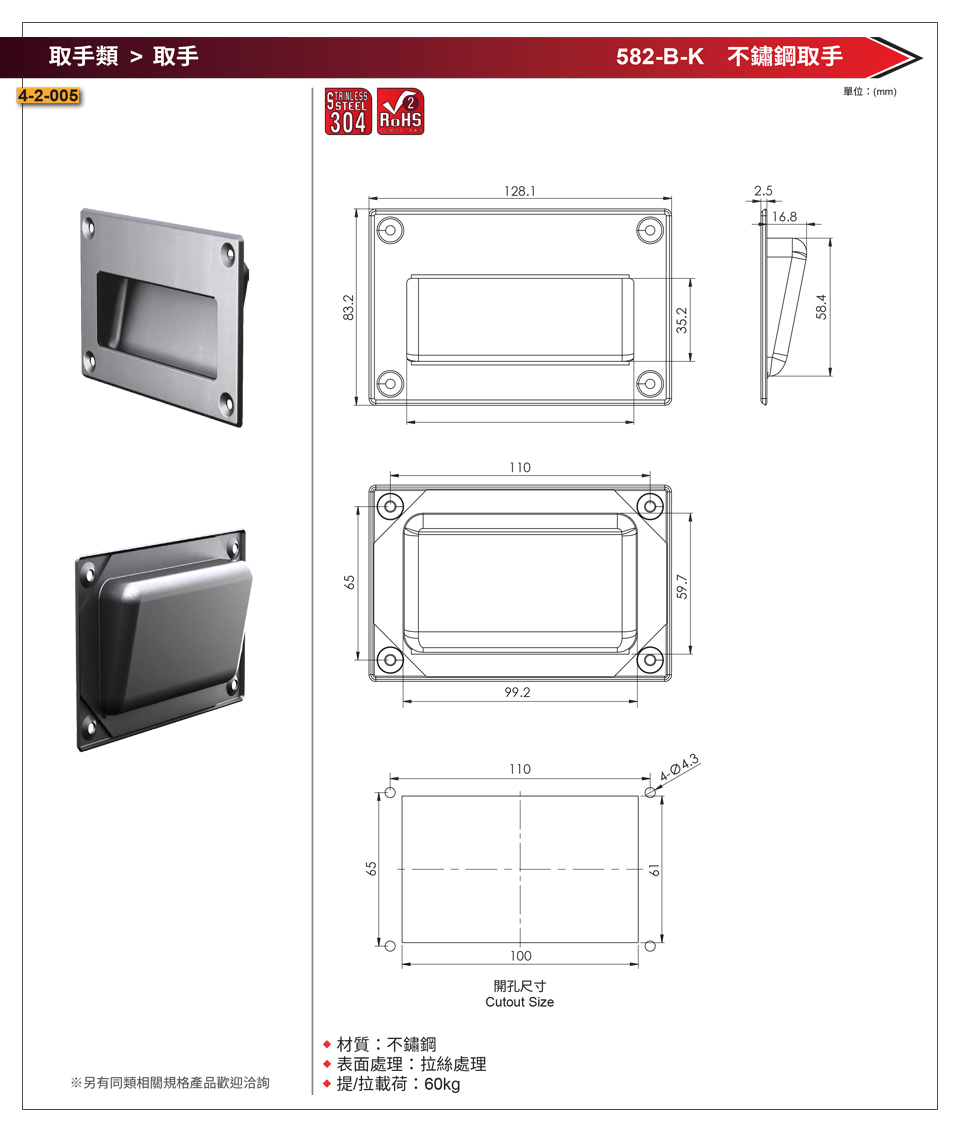 582-B-K 不鏽鋼取手 數量