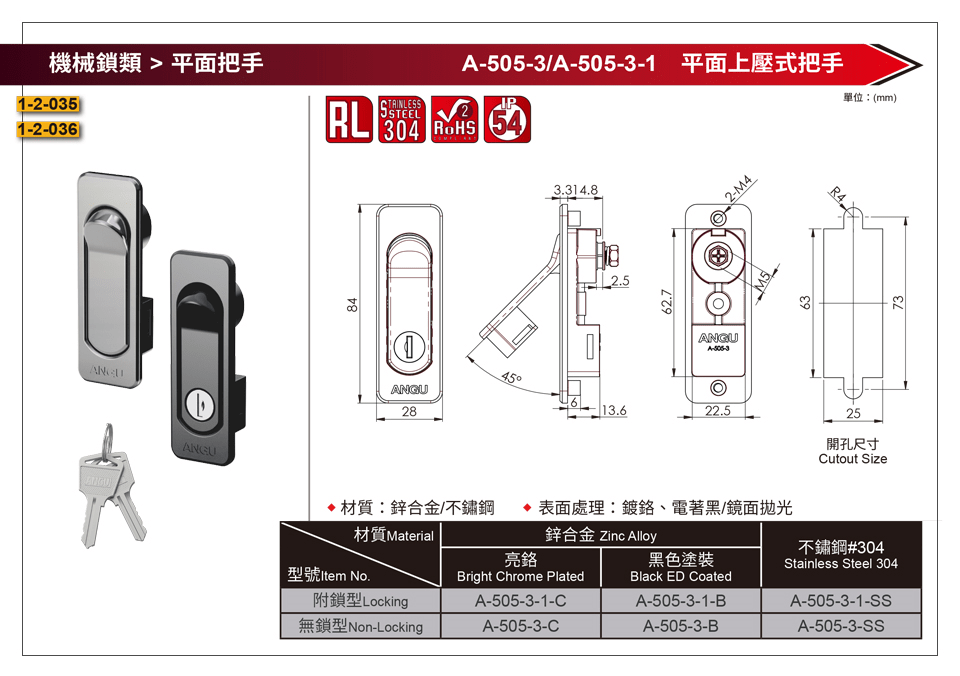 / A-505-3-1 平面上壓式把手
