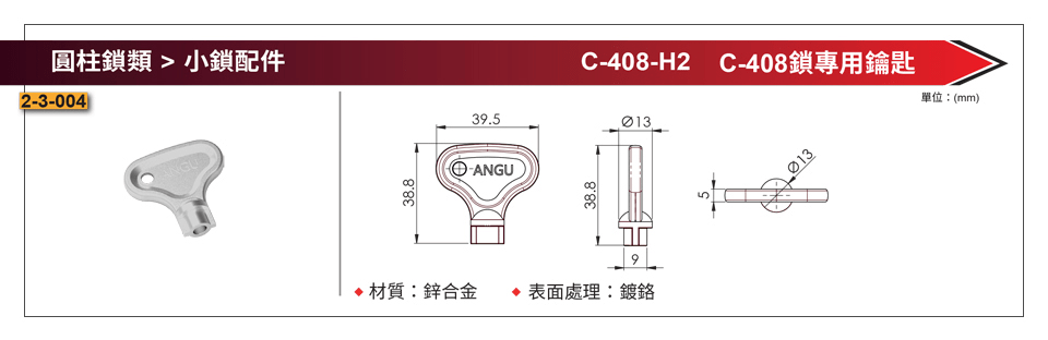 / C-408-H2 C-408鎖專用鑰匙